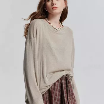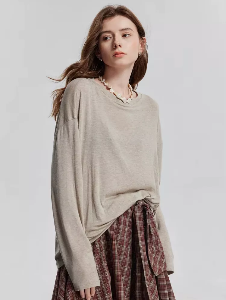 Women’s Lyocell Wool Long Sleeve Pure Color Pullover T-shirt